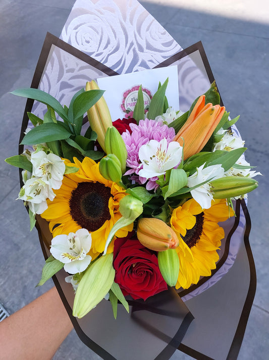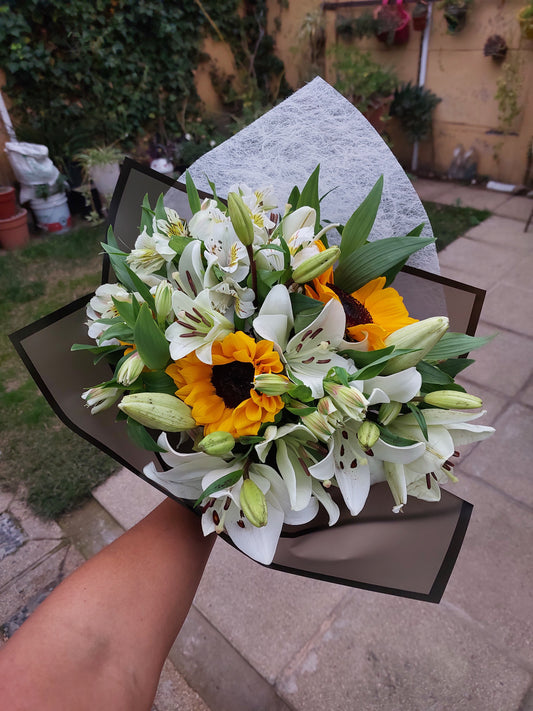 Bouquet Mix de Girasoles, Lilium Asiáticos y Alstroemerias