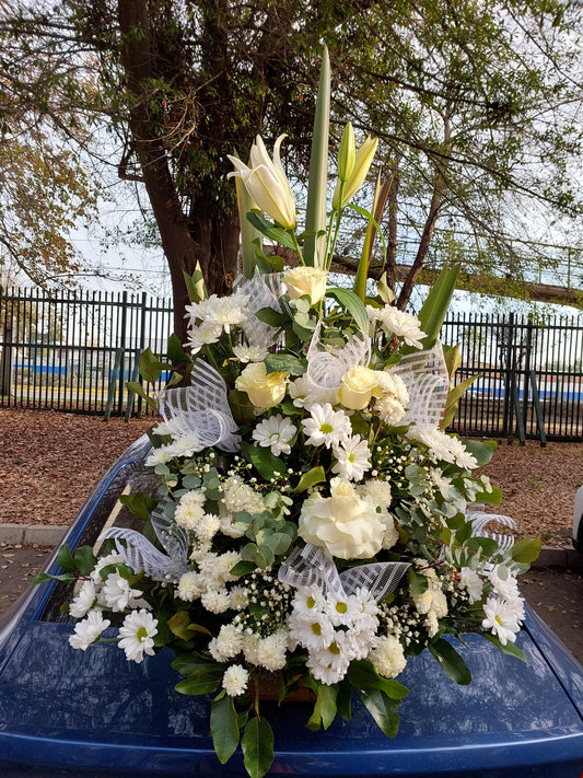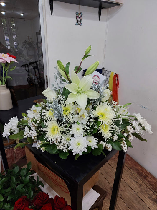 Arreglo Funerario Liliums y Alstroemerias - Arreglo Fúnebre Flores talla L