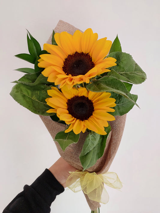 Ramo 2 Girasoles y Ruscus en Arpillera