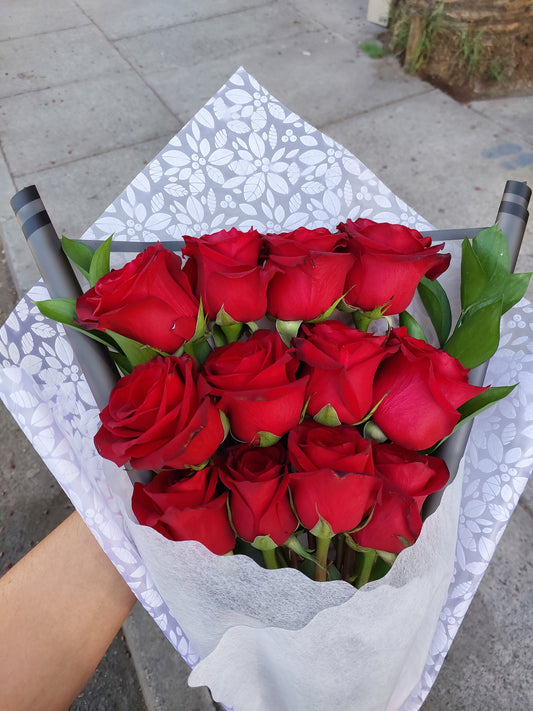 Ramo 12 Rosas Ecuatorianas Rojas en Escalera - Rosas Importadas