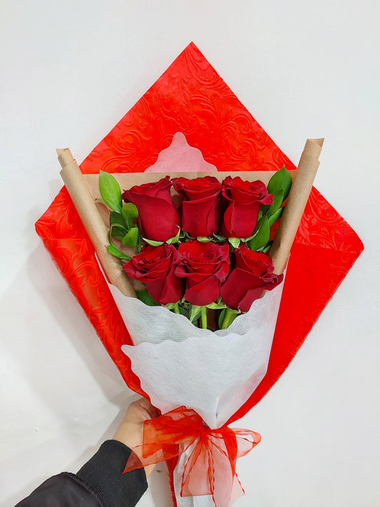 Ramo 6 Rosas Ecuatorianas Rojas en Escalera - Rosas Importadas