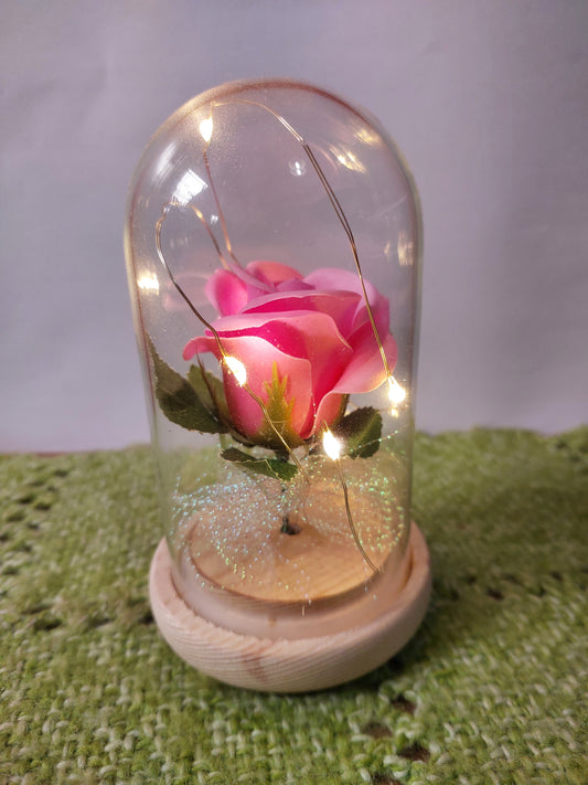 Rosa de Jabón en Cúpula de Cristal - Rosa Rosada con Luces