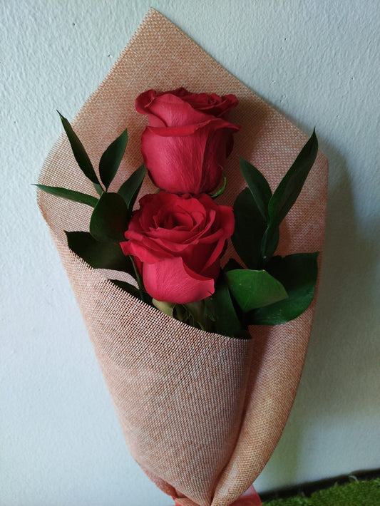 Ramo 2 Rosas Ecuatorianas y Ruscus en Arpillera