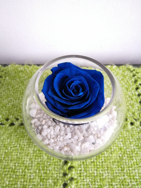 Rosa Azul Preservada en Cúpula de Cristal - Rosa Eterna sin Tallo