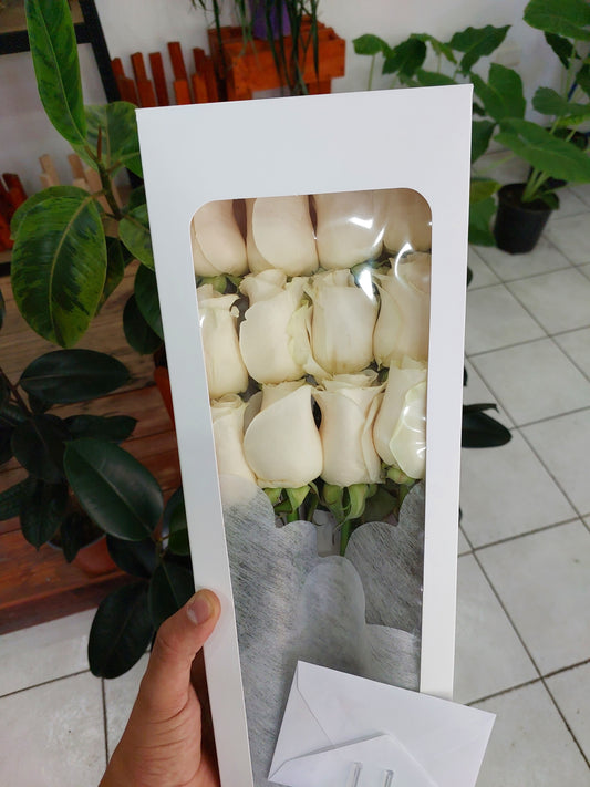 Caja 6 Rosas Ecuatorianas Blancas - Media Docena de Rosas