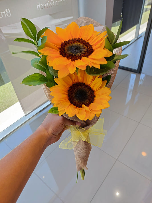 Ramo 2 Girasoles y Ruscus en Arpillera