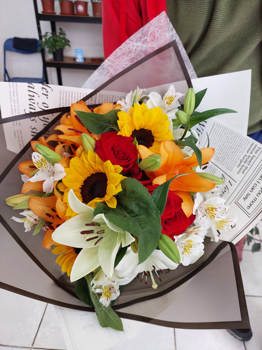 Bouquet Mix de Girasoles, Liliums y Lirios de Campo