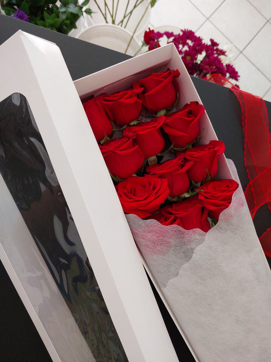 Caja 12 Rosas Ecuatorianas Rojas - Docena de Rosas Rojas Importadas