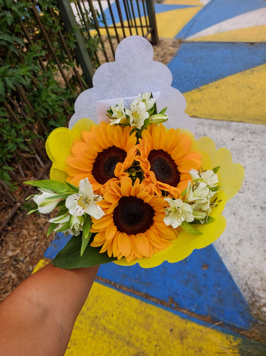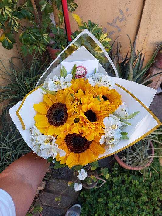 Bouquet 5 Girasoles y 5 Lirios de Campo
